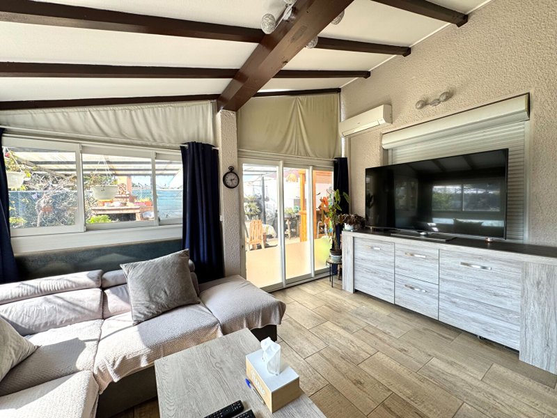 A vendre, résidence les Aigues Marines à Saint-Cyprien Plage : maison en R+1 avec au rez-de-chaussée, une cuisine ouverte équipée, un séjour ,...