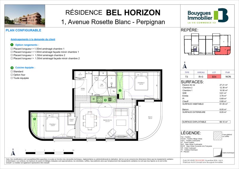 Perpignan – Palais des Congrès Dans une résidence sécurisée, laissez-vous séduire par la jolie vue dégagée sur la ville et les remparts de...