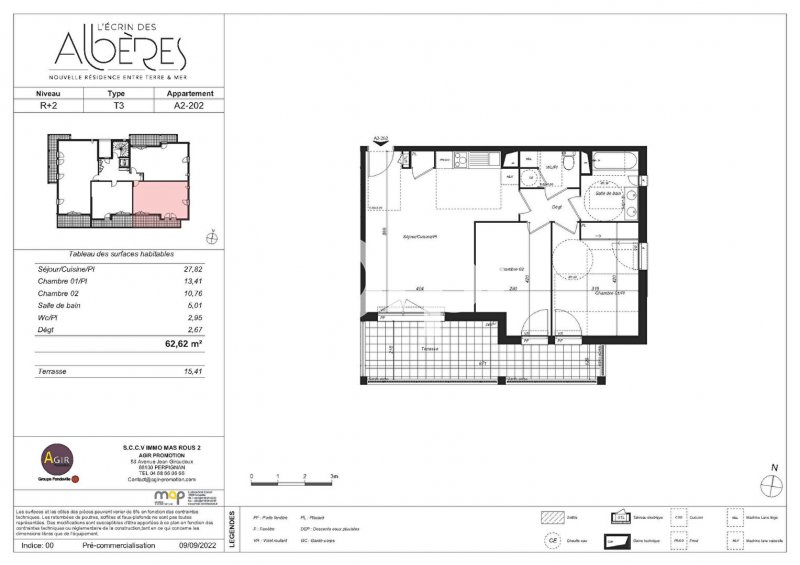 Vente appartement dans résidence neuve, lot de 63 m² au 2eme étage avec ascenseur et terrasse de 31m²et parking en extérieur, livraison pour le...