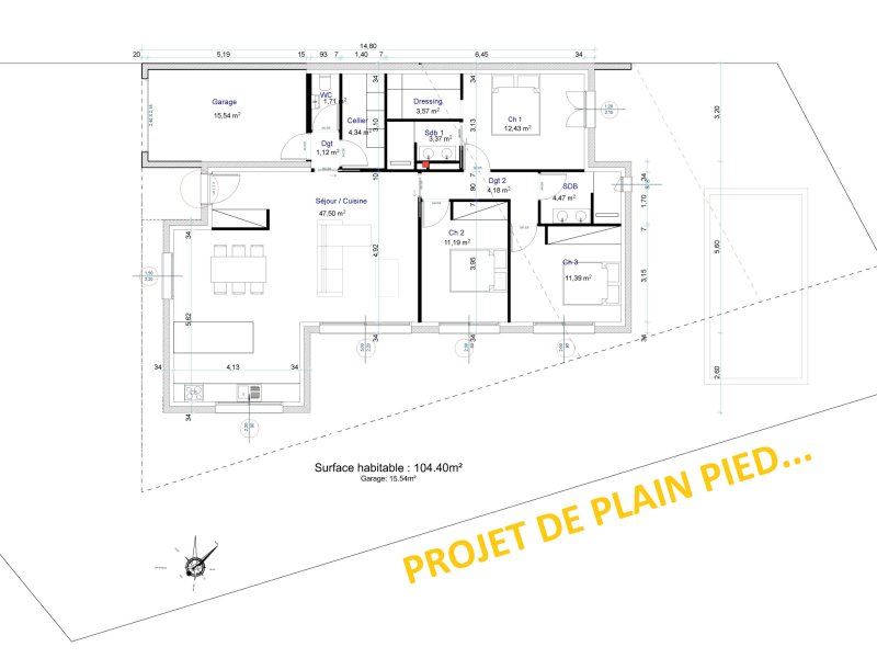 Villa de plain-pied neuve aux normes RE 2020 de 104m2 habitables + garage sur terrain de 430 m2. A St Cyprien (66), proche de la plage et des...