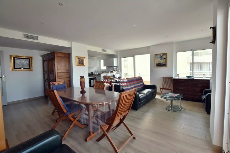 Hyper centre et vue mer panoramique. Au quatrième étage d'un immeuble cossu de la place Méditerranée, cet appartement de 83m2, superbement rénové...