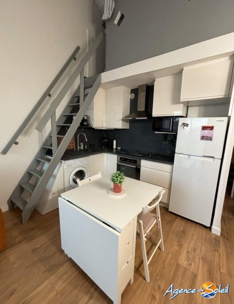 Découvrez ce charmant appartement T2-mezzanine de 31.91 m², entièrement meublé, climatisé et en excellent état au 3ème et dernier étage de l'immeuble. Il se compose d'un hall d'entrée, d'une pièce à vivre avec un coin cuisine, d'une chambre, salle de bains, WC indépendant, et un coin nuit en mezzanine. Cet appartement baigné de lumière offre une vue dégagée et une terrasse de 7 m² pour profiter des doux moments en plein air. À proximité, vous trouverez plusieurs commodités : des commerces alimentaires à 10 min en voiture, écoles maternelle et élémentaire à 10 min en voiture ou transport scolaire mis en place par la municipalité, des médecins généralistes à 10 min en voiture, une piscine et de nombreux espaces sportif à disposition, une crèche à 5 min en voiture et un arrêt de bus à 5 min à pied. Disponible immédiatement. Honoraires de 303,15 TTC à la charge du locataire comprenant 95,73 TTC pour l'état des lieux. Loyer de base 600.00 /mois. Provision sur charges 30 /mois, régularisation annuelle. Dépôt de garantie 600 . Classe énergie C, Classe climat A Montant moyen estimé des dépenses annuelles d'énergie pour un usage standard, établi à partir des prix de l'énergie de l'année 2021 : entre 385.00 et 521.00 . Les informations sur les risques auxquels ce bien est exposé sont disponibles sur le site Géorisques : georisques.gouv.fr. . Retrouvez tous nos biens sur www.agencedusoleil.com