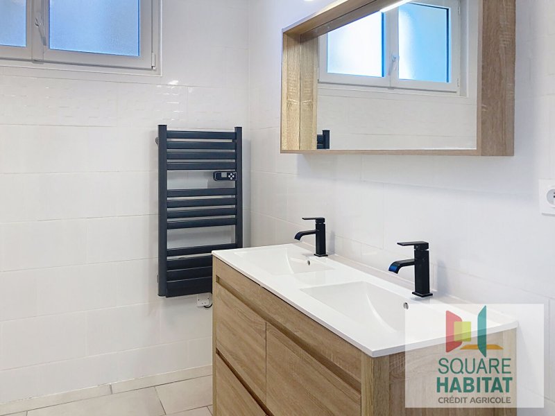 Baho, appartement T5 entièrement climatisé au 1er et dernier étage d'une maison composé d'une entrée, séjour avec cuisine ouverte équipée (meubles, plan de cuisson, hotte) donnant sur grand balcon, dégagement, 4 chambres avec placard dont trois donnant sur balcon, salle d'eau, toilette séparé et garage - Charges incluses : TOM et eau - Disponible de suite Logement conventionné ANAH plafond de revenus règlementés