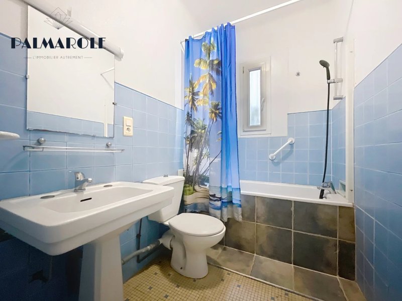 Appartement de type T2 situé au 1er étage. Il se compose d'un hall d'entrée, une salle de bains avec WC, une cuisine aménagée semi équipée, un séjour donnant sur une loggia fermée, une chambre avec placard et une cave.