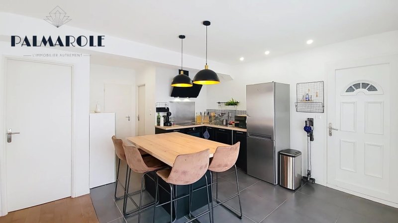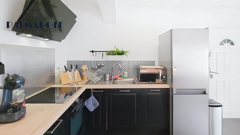 La cuisine américaine dispose d'un frigo congélateur, de plaques de cuisson, hotte, four, micro ondes et un lave vaisselle.