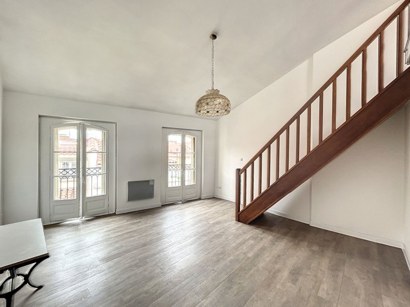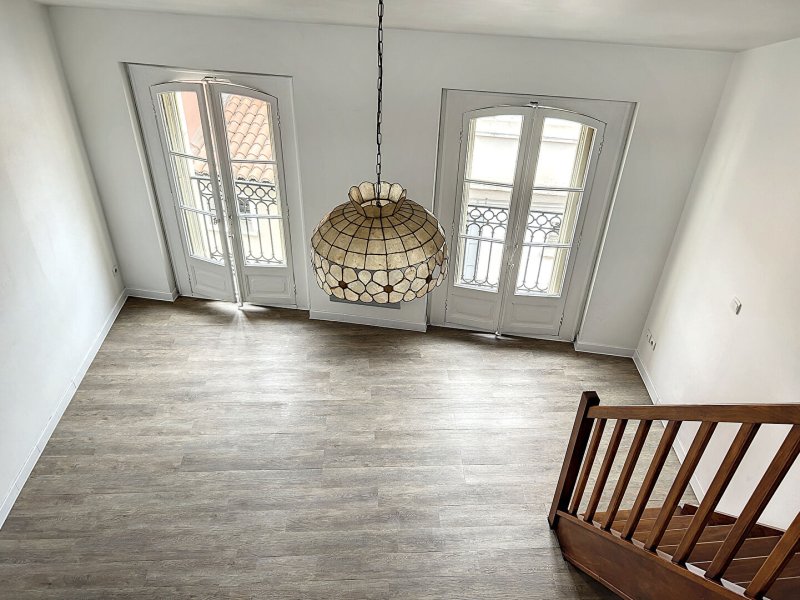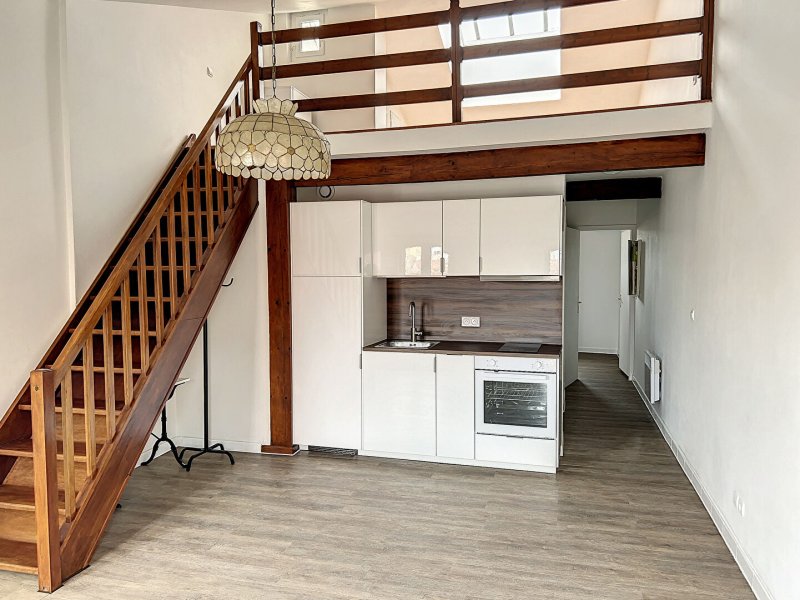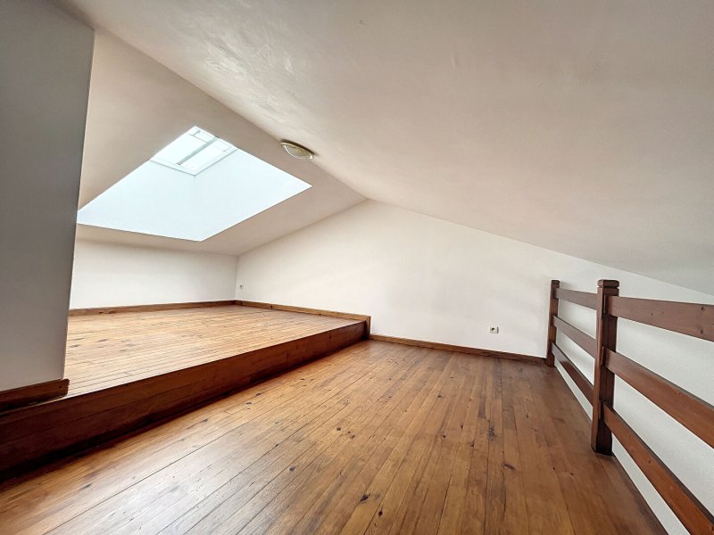 Appartement T2 avec mezzanine au 4ème étage sans ascenseur, offrant une belle vue dégagée sur les toits de Perpignan. L'appartement se compose d'une entrée, un séjour avec cuisine équipée ( plaque de cuisson, hotte, four, réfrigérateur), une chambre, une salle d'eau avec WC et machine à laver. Pour un meilleur confort, 2 climatiseurs mobiles sont à disposition dans le logement. L'escalier mène à une mezzanine de 16.40 m² , cette surface ne fait pas partie des 39 m² de la surface habitable(dont 1,20 m² supérieur à 1.80 m²). Belle hauteur sous plafond et belle luminosité.