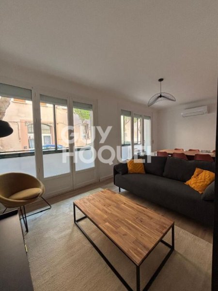 A PERPIGNAN quartier ARAGO, situé un RDC d'un immeuble sécurisé, un appartement F3 meublé de 72m2 comprenant une entrée, un séjour, une cuisine indépendante équipée, deux chambres, une salle d'eau, un toilette, deux loggias. Appartement entièrement équipé de la climatisation réversible. Eau chaude gaz de ville avec chaudière individuelle. Rénovation complète en 2025, à étrenner.