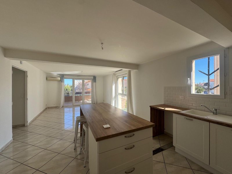 PERPIGNAN MASSILIA / MEDIPOLE, dans un petit immeuble, quartier calme et recherché, entre Canet et Cabestany, au 1er étage, bel appartement en très bon état, entrée, séjour climatisé et très lumineux sur 2 faces avec coin cuisine équipée donnant sur une terrasse, 2 grandes chambres, salle d'eau. Garage et place de stationnement.
