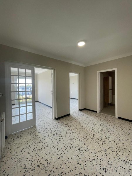 PERPIGNAN SABARDEIL - APPARTEMENT F4 AVEC GRAND GARAGE - PERPIGNAN SABARDEIL / CLOS BANET - DISPO 01/02 - Appartement F4 en très bon état situé au 1er étage d'un petit immeuble de 2 logements. Entrée commune desservant un garage (24,93 m2) et buanderie (13,35 m2) accédant à un jardin privatif par logement de 55 m2. L'appartement se compose d'une entrée, d'un séjour avec climatisation et balcon exposé sud-ouest, d'une cuisine, de 3 chambres et un wc pour une superficie de 86,63 m2.