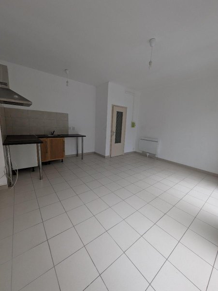Entrée, salle d'eau/WC, chambre, placard, séjour avec cuisine ouverte.