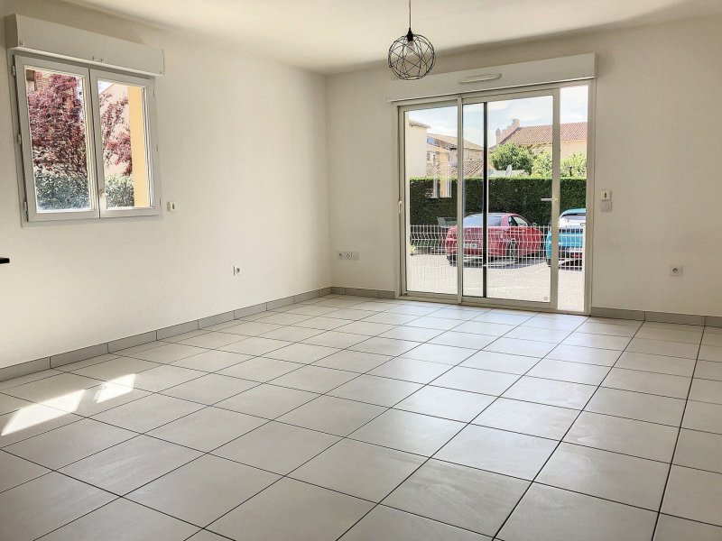 Appartement T3 climatisé de 62m², situé en rez-de-chaussée, composé d'une entrée avec placard, d'un séjour/salon ouvert sur la cuisine aménagée (hotte, meubles de rangement, plan de cuisson), 2 chambres, une salle de bain, WC. L'appartement dispose d'une terrasse, d'un garage et deux places de parking. Charges : TOM, eau syndic - Disponible à partir du 10/02/2026
