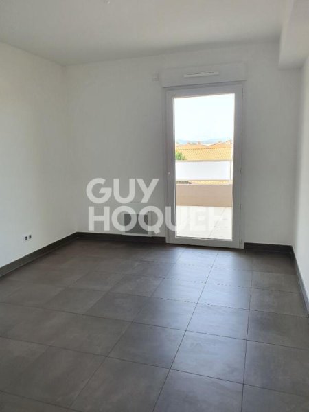 A VILLENEUVE DE LA RAHO , situé au 1er étage avec ascenseur d'un immeuble récent et sécurisé, un appartement F3 de 66m2 non meublé comprenant une entrée, un séjour de 25m2 avec cuisine aménagée, deux chambres, une salle d'eau, un WC indépendant, une terrasse de 25m2. Loué avec 2 emplacements de parking privés. Chauffage électrique.