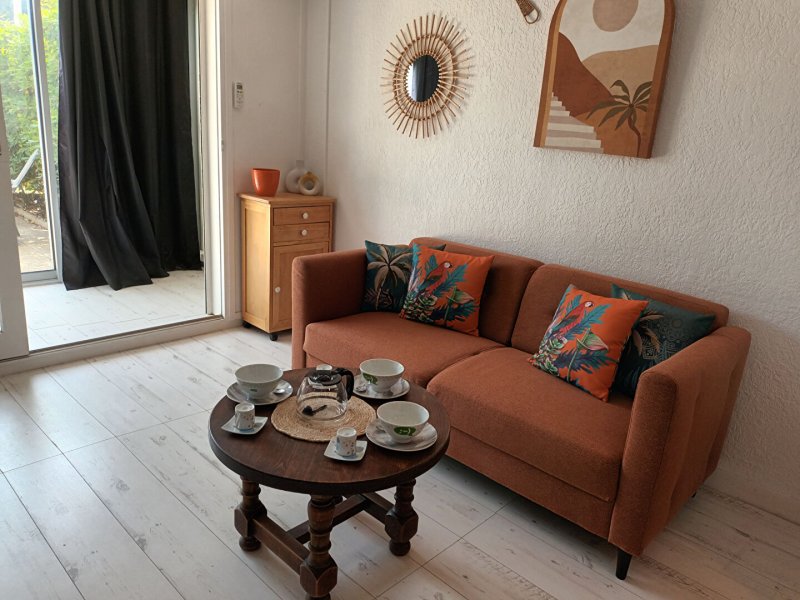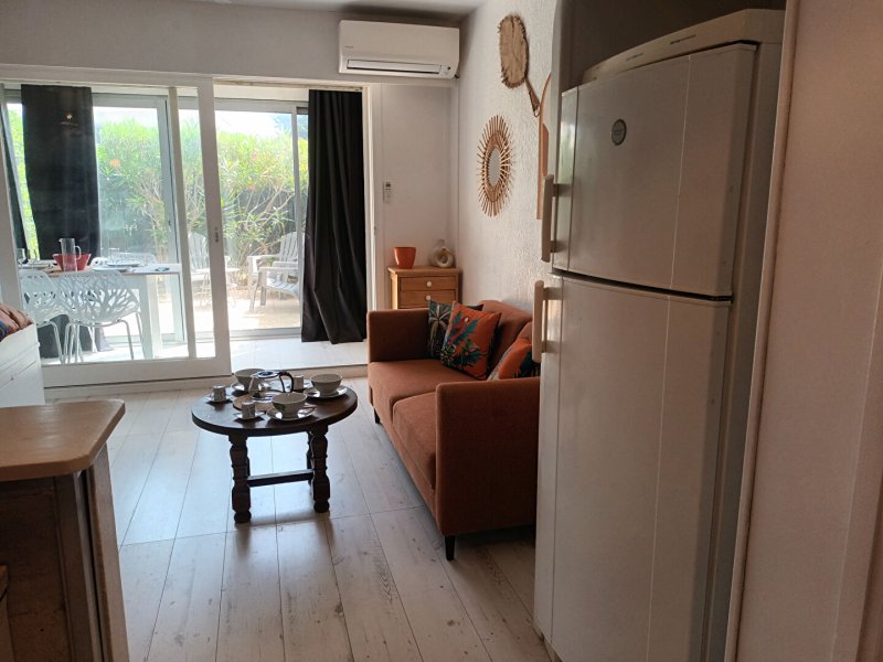 Canet plage centre, agréable studio meublé à l'année situé dans une résidence avec piscine et parking privé. Au rez-de-chaussée, composé d'un séjour salon cuisine ouverte, une salle d'eau avec WC, véranda et terrasse extérieure avec mobilier de jardin. Climatisation réversible. Piscine collective et parking privé. Disponible de suite. Loyer : 430 Euro/mois cc (dossier soumis à l'assurance des loyers impayés, sous conditions.)
