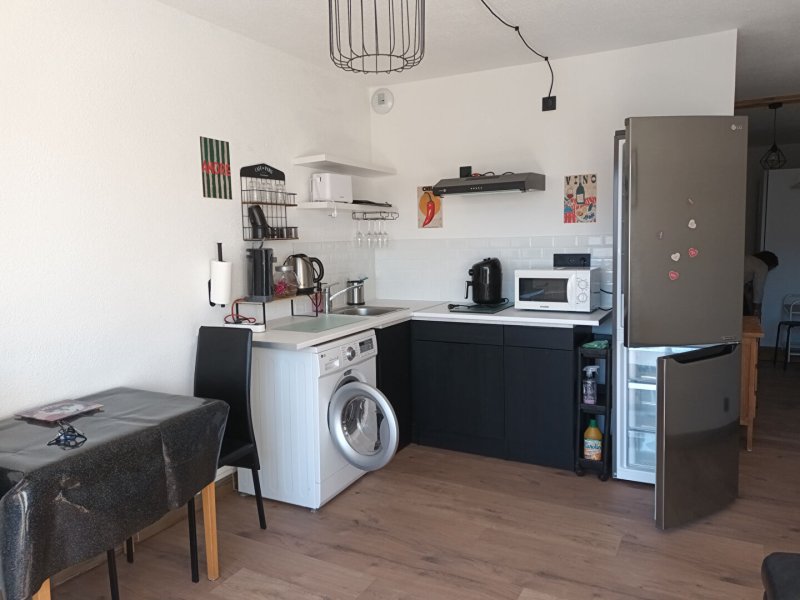Canet plage centre T1 meublé entièrement refait à neuf composé d'un hall d'entrée avec rangement, une jolie pièce de séjour salon cuisine ouverte donnant sur une belle terrasse avec vue dégagée, une chambre, salle d'eau avec douche , WC, petit cellier de rgt. Au 3ème étage sans ascenseur. Surface 33 m². CLIMATISATION. Disponible de suite. Loyer : 545 Euro/mois cc