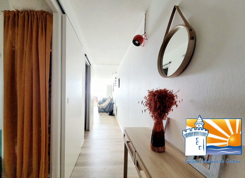 Ce coquet T2 se trouvant au 5ème étage (ascenseur) d'une résidence prisée à 350m de la Place Méditerranée. Idéalement situé en front de mer à 50m de la plage. Cuisine rénovée toute équipée, 1 grande chambre avec un lit double (140), le salon donnant sur une loggia fermée qui elle vous offre une superbe vue mer! Confort cosy et moderne. Equipements: Plaque à induction, lave-vaisselle, lave-linge, climatisation portative, place de parking souterrain. Les commerces, animations et la mer à quelques mètres seulement. une vue exceptionnelle sur les plus belles plages de Canet. RENSEIGNEMENT AU 04 68 67 40 33 Les informations sur les risques auxquels ce bien est exposé sont disponibles sur le site GEORISQUES :www.georisques.gouv.fr comprenant 116,34 TTC pour l'état des lieux. Loyer de base 590.00 /mois. Provision sur charges 60 /mois, régularisation annuelle. Dépôt de garantie 590 . Classe énergie D, Classe climat B. Montant moyen estimé des dépenses annuelles d'énergie pour un usage standard, établi à partir des prix de l'énergie de l'année 2015 : 432.18 . Date de réalisation du DPE : 30-04-2019. Les informations sur les risques auxquels ce bien est exposé sont disponibles sur le site Géorisques : georisques.gouv.fr. . Retrouvez tous nos biens sur www.agencedusoleil.com