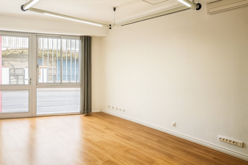À l'arrière, le local dispose d'un second bureau indépendant équipé d'un placard, d'une vitrine supplémentaire et d'un accès direct sur la rue opposée. L'ensemble offre une configuration traversante, fonctionnelle et facilement exploitable pour différentes activités professionnelles ou commerciales.