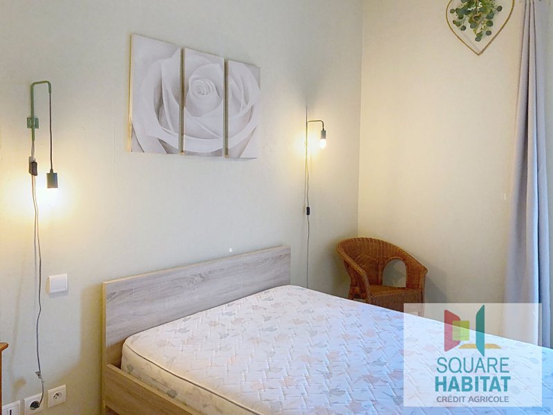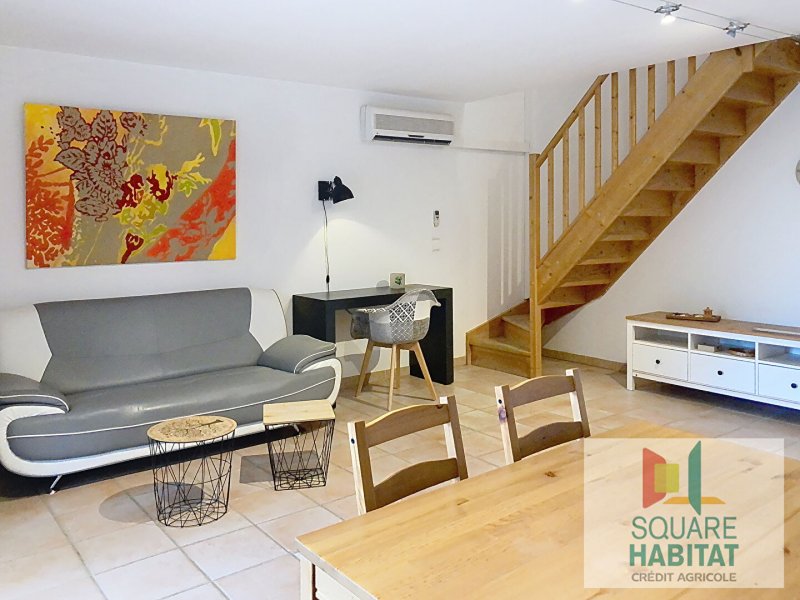 Au premier étage, un palier ouvre sur deux chambres dont une donnant sur terrasse, dressing et salle d'eau. La maison dispose d'une place de parking et un jardin. PAS DE GARAGE - Disponible de suite - Charges incluses : Eau, Electricité, taxe d'ordures ménagères