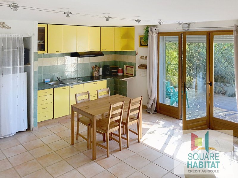 Entre Bages et Villeneuve de la Raho, jolie maison MEUBLEE au coeur de la nature composée d'un séjour avec cuisine ouverte équipée (meubles, plan de cuisson, hotte, four, réfrigérateur, machine à laver) et toilette indépendant.