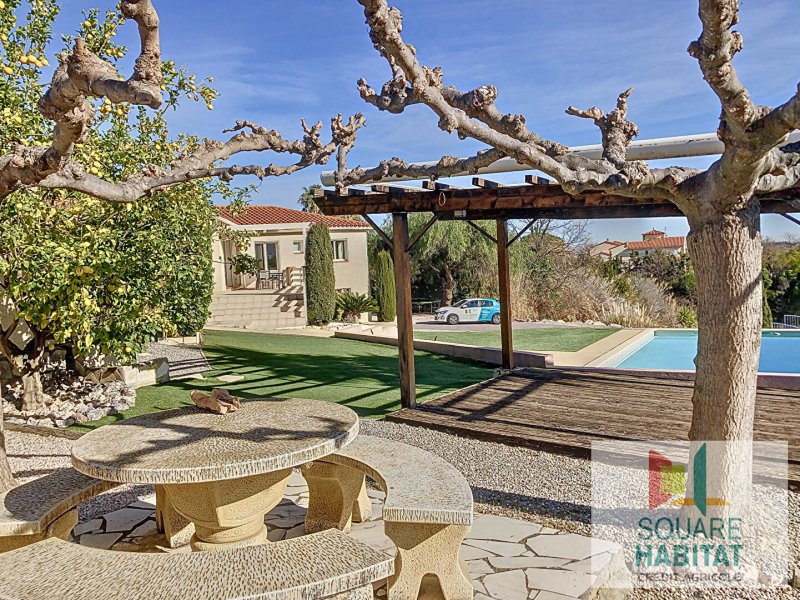 Secteur sur de Perpignan, grande maison de 160m² avec piscine 10 X 5 sur terrain arboré de 3000 m² avec une jolie vue dégagée sur la nature. La maison est composée d'une entrée, séjour double avec cuisine ouverte équipée (meubles, plan de cuisson, hotte, four, lave vaisselle, réfrigérateur) cellier, dégagement ouvrant sur 3 chambres dont une avec dressing, salle de bains + douche, toilette séparé. La maison bénéficie d'un grand garage au sous sol avec buanderie, belle piscine, abris de jardin et plusieurs terrasses. Climatisation + chauffage au sol (fioul), aspiration centralisée, terrain de pétanque. Disponible au 1er/03/2026. Charges incluses: TOM et contrat entretien piscine (devis en cours)