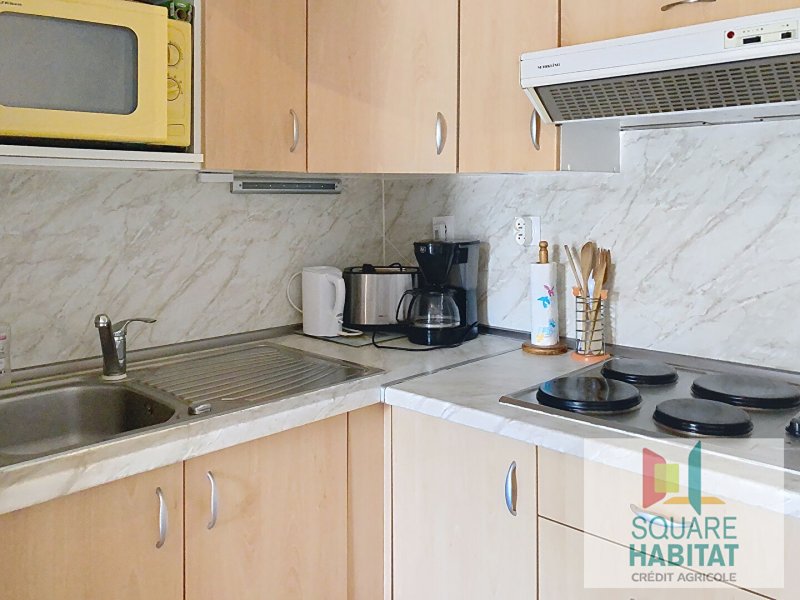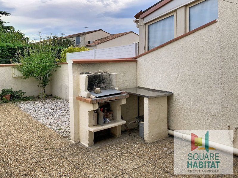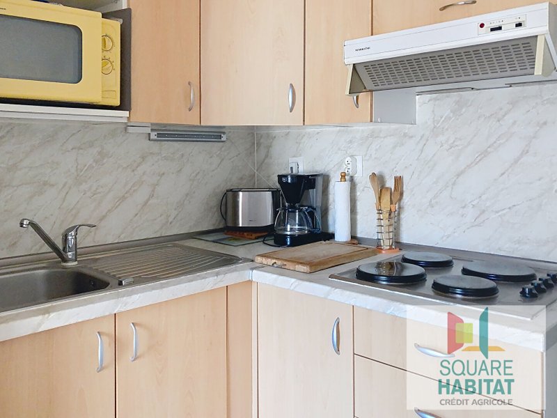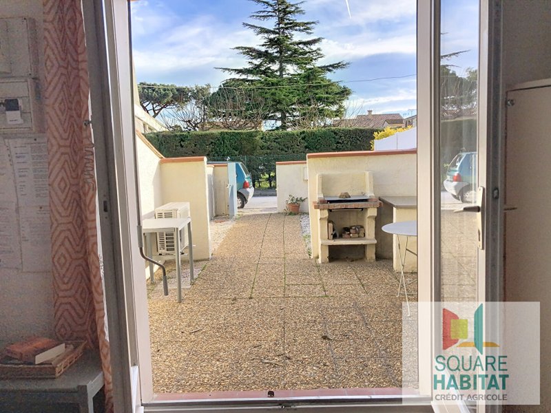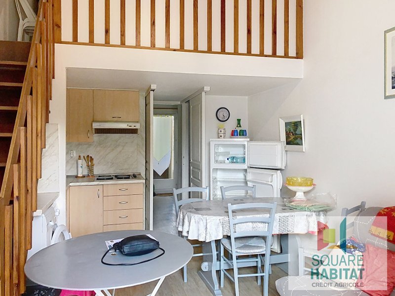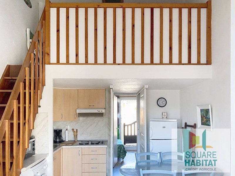 ST CYPRIEN PLAGE Petite maison MEUBLEE en 2 faces composée d'un séjour avec cuisine ouverte équipée (plan de cuisson, hotte, micro-onde, four, réfrigérateur congélateur, meubles) un bureau avec placard, salle d'eau, toilette et au premier étage une mezzanine mansardée. La maison dispose d'une petite cours à l'avant et d'une place de parking extérieure. Charges incluses : Eau, syndic et TOM - Disponible de suite