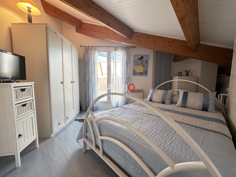Idéalement situé au 4? et dernier étage d'une résidence avec ascenseur, au coeur du port d'Argelès-sur-Mer, ce charmant appartement bénéficie d'un emplacement privilégié. Au premier niveau, vous découvrirez une spacieuse pièce de vie lumineuse avec cuisine ouverte, prolongée par une loggia offrant une agréable vue sur la mer, ainsi qu'une salle d'eau et un WC indépendant. À l'étage, une chambre confortable s'ouvre sur une terrasse avec une vue imprenable sur le massif des Albères,. Atout rare sur le port : l'appartement est équipé d'une cheminée, élément unique qui confère charme et caractère à ce bien. Une place de parking privative complète ce bien. Honoraires inclus de 4.55% TTC à la charge de l'acquéreur. Prix hors honoraires 220 000 . Dans une copropriété de 50 lots. Quote-part moyenne du budget prévisionnel 900 /an. Aucune procédure n'est en cours. Classe énergie D, Classe climat B. Montant moyen estimé des dépenses annuelles d'énergie pour un usage standard, établi à partir des prix de l'énergie de l'année 2021 : 805.00 . Date de réalisation du DPE : 09-03-2023. Les informations sur les risques auxquels ce bien est exposé sont disponibles sur le site Géorisques : georisques.gouv.fr.