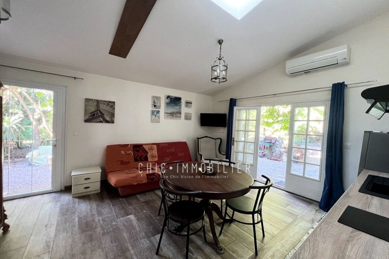 A Vendre à Argelès-sur-Mer ! Appartement d'environ 28m². Rare avec 560m² de terrain, la nature s'invite dans votre appartement, de quoi vous offrir un potager, votre hamac au fond du jardin sur un terrain arboré, À 3km des plages, à proximité d'Intermarché et à 1,5km du centre village ( en vélo avec agréable piste cyclable. Ravissant appartement 2 pièces au rez-de-jardin situé à Argelès village. D'une surface totale de 28m² et un grand jardin. Cet appartement orienté Nord Ouest. Entièrement fonctionnel et en bon état, il possède une cuisine Américaine équipée, un système de chauffage individuel par climatisation réversible. Les prestations comprennent double vitrage pour une parfaite isolation et un environnement calme pour votre tranquillité. L'appartement comprend 1 chambre cosy, 1 salle de douche moderne avec Wc intégré. Enfin, 2/5 parkings viennent compléter ce bien, à l'intérieur de votre parcelle.