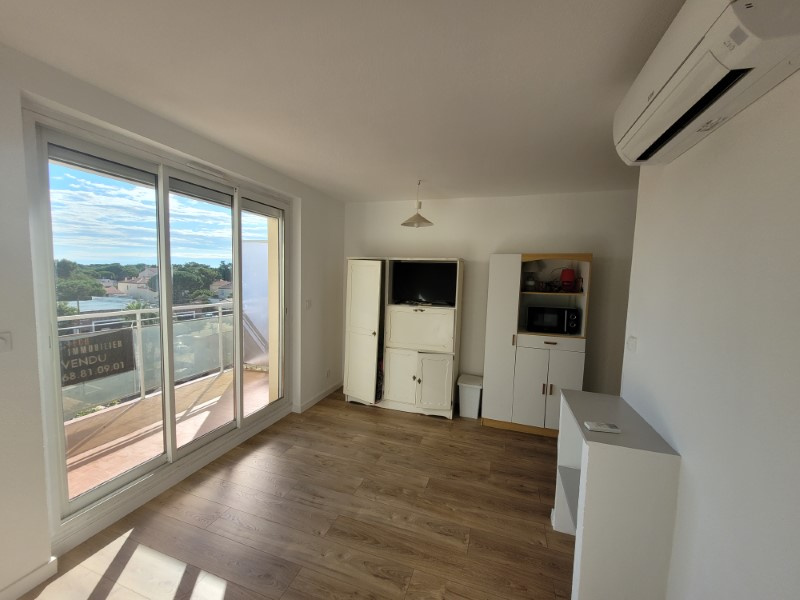 Proche Centre Plage, Résidence sécurisée avec ascenseur, au 4ème et dernier étage, appartement T2 de 25m2, rénové, composé d'un séjour-kitchenette neuve avec clim, chambre avec placard, salle d'eau wc, terrasse 112 exposée Est, ensoleillement matinal. Double vitrage, volets roulants électriques. Intérieur repeint. Cave 5m2. Pkg. Idéal pied à terre pour les vacances. Les informations sur les risques auxquels ce bien est exposé sont disponibles sur le site Géorisques : https://www.georisques.gouv.fr Pour plus de renseignements, contactez TECH IMMOBILIER
