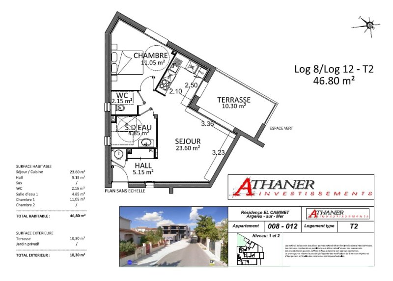 Direct Promoteur - Une nouvelle résidence de standing à Argeles sur mer, idéalement situé avec son emplacement privilégié « Secteur mairie, Rue Cami Trencat », nous vous proposons dans un futur très proche, un petit ensemble immobilier de 12 appartements sur 2 étages avec ascenseur. Du Type 2 Pièces au Type 3 Pièces. Habitation entièrement équipé de la climatisation, de volets roulants électriques, d'un chauffe-eau thermodynamique et de finitions de standing. Au 1er Etage, Appartement traversant de Type 2 Pièces totalisant environ 45.75m2 habitable. Terrasse exposée Sud / Est de 14.50m2 Parking sécurisé et privatif - Normes PMR Contactez-nous à l'Agence Athaner Immobilier pour plus de renseignements. Nos bureaux sont en face du centre de lavage Éléphant Bleu de la Zone d'Activité 24, Av des flamants Roses 66700 Argelès sur Mer - 04 68 95 62 84