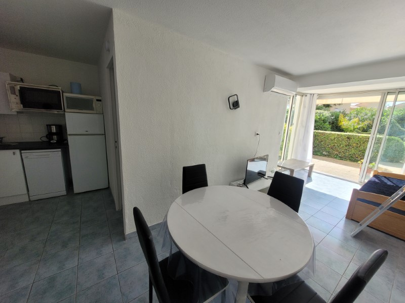 Résidence avec Piscine, Bel Appartement lumineux, traversant en rez-de-jardin de 33m2 sh (28,03m2 Carrez), composé d'une entrée, séjour, coin cuisine équipée, chambre, loggia, salle d'eau, wc. Climatisation, intérieur repeint. Terrasse exposé Sud Est de 20m2. Parking privatif. Résidence sécurisée, très bien entretenue. Espace piscine neuf. Nouveau portail coulissant électrique Idéal pied à terre pour les vacances. Les informations sur les risques auxquels ce bien est exposé sont disponibles sur le site Géorisques : https://www.georisques.gouv.fr