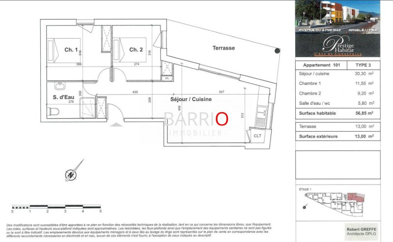 À quelques pas du village et de la plage d'Argelès-sur-Mer, découvrez cette résidence intimiste et à taille humaine, alliant confort et standing. Appartement T3 Spacieux et lumineux Surface : 57m² Terrasse : 13 m² Garage inclus Prestations haut de gamme : Cuisine entièrement équipée Salle d'eau aménagée Baies en aluminium avec volets roulants électriques dans toutes les pièces Portes intérieures décoratives Placards aménagés Carrelage grand format au choix Terrasses carrelées Équipements et services : Grand local vélos Jardin potager Normes : RE2020 construction neuve et éco-performante Honoraires à la charge du vendeur. Dans une copropriété de 12 lots. Aucune procédure n'est en cours. DPE en cours. Les informations sur les risques auxquels ce bien est exposé sont disponibles sur le site Géorisques : georisques.gouv.fr.