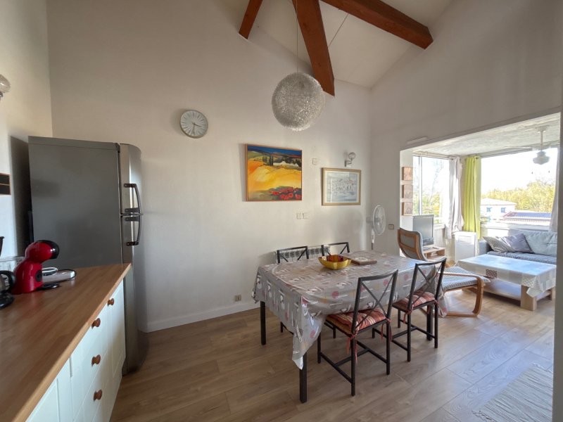 Appartement rare dans la résidence : beau volume grâce à la mezzanine, parquet neuf et emplacement au calme, à distance de la piscine. Situé à Argelès-sur-Mer, dans un secteur recherché entre le village et les plages, cet appartement F2 avec mezzanine bénéficie d'un environnement privilégié au sein d'une résidence sécurisée avec piscine et place de stationnement privative, parfaitement entretenue et entourée d'un agréable cadre paysager. L'appartement se compose d'une entrée avec placards, d'un grand séjour avec cuisine ouverte. L'ancienne terrasse fermée a été intégrée à la pièce de vie, créant un espace confortable et baigné de lumière grâce à trois grandes baies vitrées. L'ensemble de l'appartement est équipé d'un parquet neuf, apportant une atmosphère chaleureuse et contemporaine. Un dégagement dessert une salle d'eau entièrement rénovée, un WC indépendant ainsi qu'une petite chambre modulable, pouvant s'ouvrir sur le séjour grâce à des baies vitrées, permettant d'adapter facilement les volumes selon les besoins. Un escalier en bois mène à l'espace nuit situé à l'étage, comprenant une mezzanine et une pièce indépendante, développant environ 24 m2 de surface utile. Ces espaces mansardés avec fenêtres bénéficient d'une belle lumière naturelle et offrent un volume supplémentaire très appréciable. L'ensemble permet jusqu'à 6 couchages et représente environ 60 m2 de surface utile totale, configuration idéale pour une résidence secondaire ou un investissement locatif à Argelès-sur-Mer. L'appartement est vendu entièrement équipé, avec mobilier contemporain, cuisine récente et salle d'eau rénovée. Belle exposition et appartement prêt à l'emploi. Les plus : o Résidence sécurisée avec piscine o Place de parking dans la résidence o Appartement éloigné de la piscine, garantissant plus de calme en saison o Parquet neuf dans tout l'appartement o Localisation recherchée entre village et plages o Environnement verdoyant o Nombreux couchages grâce à la mezzanine Contact : SARAH SABATIER DOMIANS IMMOBILIER ARGELES 06 16 63 20 73 / 04 68 21 50 34 Les informations sur les risques auxquels ce bien est exposé sont disponibles sur le site Géorisques : www.georisques.gouv.fr