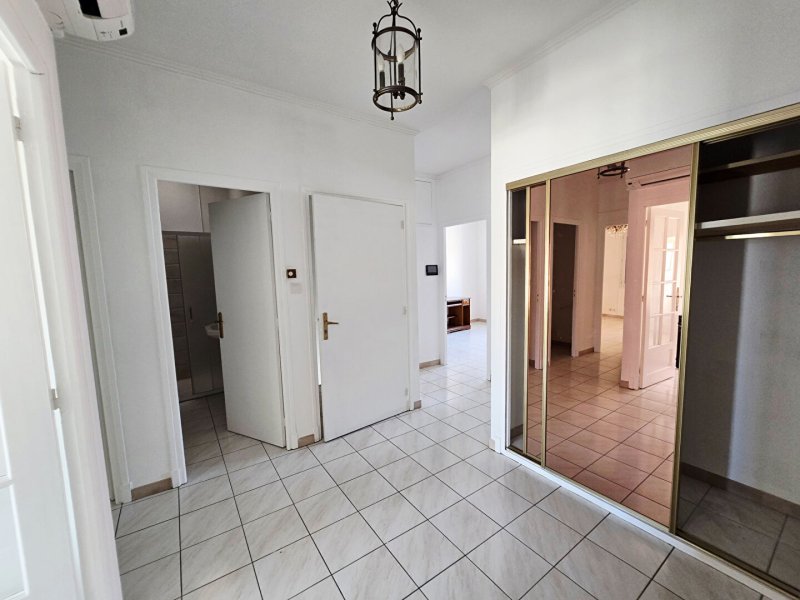 A Argelès village, proche de toutes commodités, appartement traversant type T5 de plus de 110m² avec grand garage, entrée indépendante avec au rdc un hall d'entrée et accès au grand garage de 22m² avec porte électrique, et au 1er étage, un palier, un dégagement avec placard, un salon, deux chambres et deux bureaux, une agréable loggia, une salle d'eau, le tout dans une petite copropriété avec moins de 25Euro par mois de charge. Belles prestations : double vitrage, volets roulants électriques, climatisation.