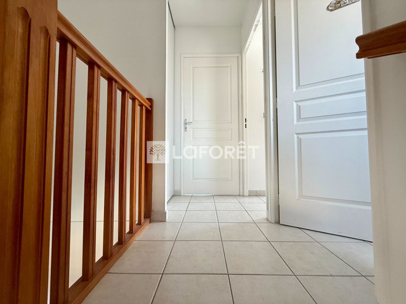 Au 1er étage, 2 belles chambres avec placard et climatisation, une salle de bains avec fenêtre. L'ensemble est calme et bien distribué . On accède par la baie vitrée à une terrasse fermée avec une pergola en bois. Pas de voisin au dessus, environnement très calme. 1 place de parking dédiée et sécurisée au pied de l'appartement.