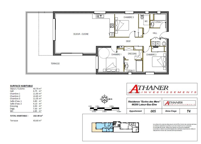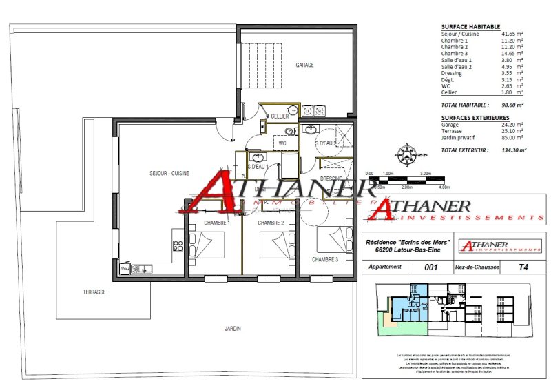 DIRECT PROMOTEUR - Un nouveau programme aux Portes de Saint Cyprien sur la commune de Latour Bas Elne. Prestige et confort sont au rendez-vous de ce lieu pensé pour vous ! L'architecture intérieure de la résidence l'Ecrin des Mers tire le meilleur parti de ses espaces privatifs Les plans des appartements de type 3 et 4 pièces ont été optimisés et développent des volumes intérieurs généreux Son exposition ensoleille tous les espaces intérieurs et offre une vue dégagée Y habiter, c'est l'assurance d'un grand confort au quotidien bénéficiant de toutes les infrastructures et services à proximité immédiate Les appartements bénéficient chacun d'un garage individuel et d'un parking privatif Cuisine aménagée et équipée offerte La résidence sera équipée d'un ascenseur Début de Commercialisation du projet FRAIS DE NOTAIRE REDUIT