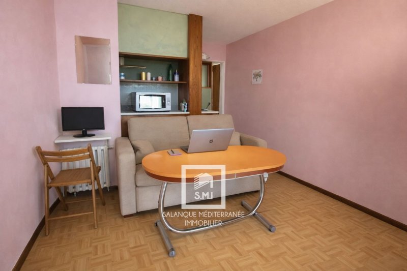 Situé au 1er étage d'une résidence, appartement T2 à vendre sur la commune du Barcarès secteur La Presqu'ile. Il se compose d'une entrée, d'une chambre, d'une salle d'eau avec WC, d'une cuisine semi-ouverte aménagée et un salon-séjour donnant sur une terrasse avec vu sur l'étang.