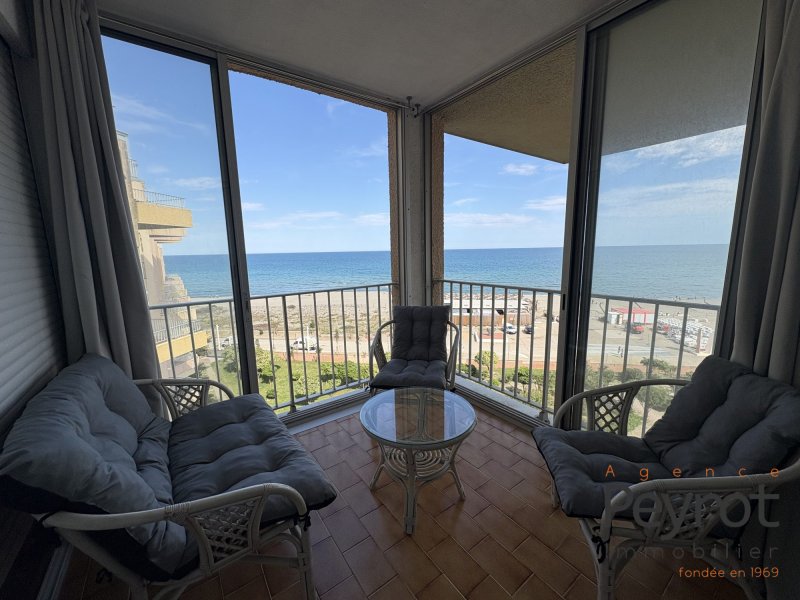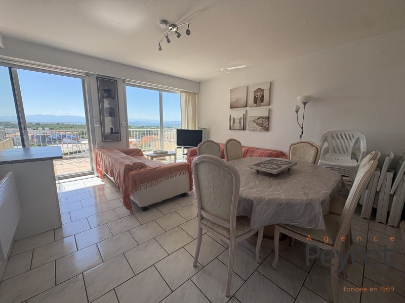 EXCLUSIVITE !!! LE BARCARES SECTEUR LE LYDIA Venez découvrir cet agréable appartement de type Duplex F3 avec sa loggia profitant d'une magnifique vue sur la mer et le bateau du Lydia et d'une belle terrasse de 13m² avec vue sur l'étang et le Canigou situé à la résidence LA SARDANE avec son accès direct sur la plage au 5ème étage avec ascenseur. Se compose d'une entrée, un agréable espace de vie et sa cuisine équipée donnant accès sur la terrasse. A l'étage: deux chambres avec placard profitant de la loggia avec la vue mer et le bateau du Lydia, une salle de bains, un wc indépendant avec douche. Une Cave et un Parking. Vendu meublé. A visiter sans tarder... Agence Peyrot: 04.68.09.72.53 Honoraires à la charge du vendeur. Dans une copropriété de 266 lots. Quote-part moyenne du budget prévisionnel 1 100 /an. Procédure en cours : Procédure judiciaire sur les travaux de ravalement des 3 Bâtiments. Classe énergie D, Classe climat B Montant moyen estimé des dépenses annuelles d'énergie pour un usage standard, établi à partir des prix de l'énergie de l'année 2021 : entre 990.00 et 1200.00 . Les informations sur les risques auxquels ce bien est exposé sont disponibles sur le site Géorisques : georisques.gouv.fr.