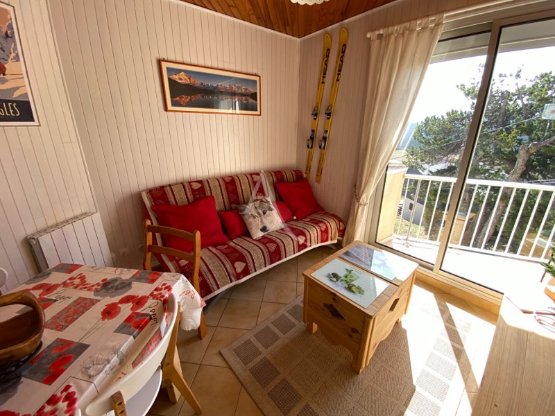 Il se compose d'un séjour ouvrant sur un balcon avec vue imprenable sur le lac et les montagnes, d'une cuisine équipée, d'une chambre avec rangements, d'une mezzanine avec couchage, ainsi que d'une salle d'eau avec WC.