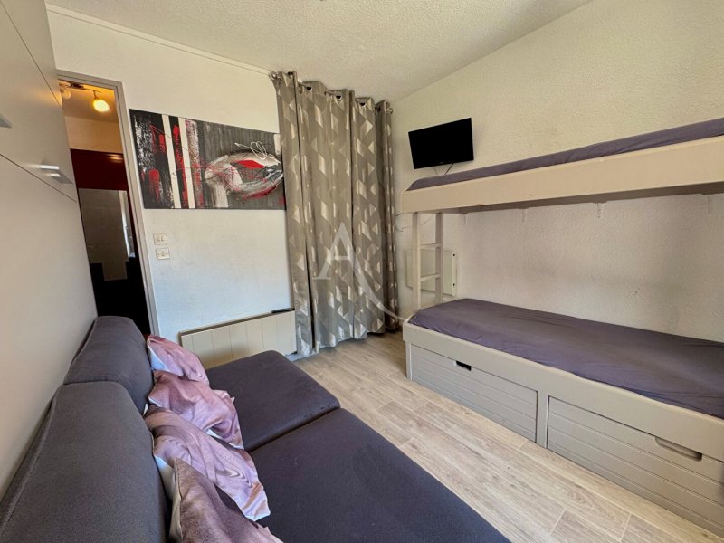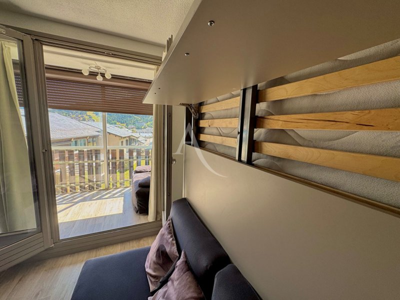 Dès l'entrée, un hall dessert l'ensemble des pièces. Vous trouverez tout d'abord une première salle d'eau avec WC, puis une chambre confortable dotée d'une loggia avec vue directe sur les pistes. Cette chambre dispose d'un placard astucieusement aménagé en lit escamotable, optimisant l'espace.