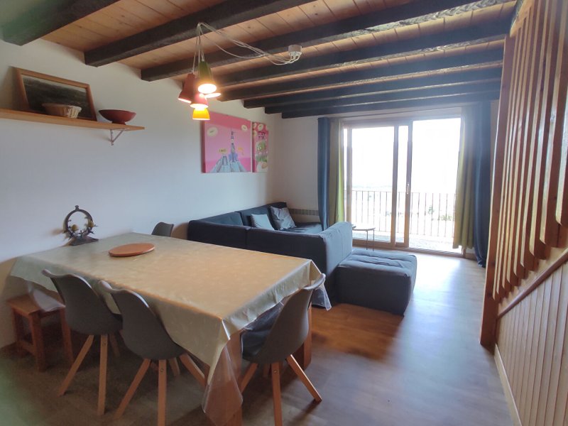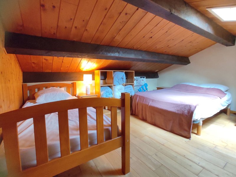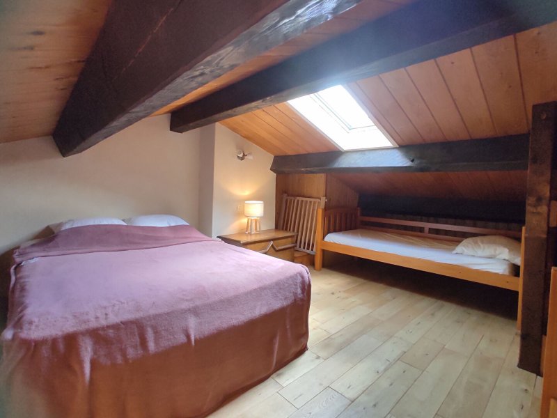 BEL APPARTEMENT EN TRIPLEX composé d'une entrée desservant une salle d'eau WC, d'un grand séjour avec une cuisine équipée donnant sur un balcon avec vue sur le lac et les montagnes, deux chambres et une salle de bains à l'étage ainsi qu'une pièce sous toit servant de dortoir.