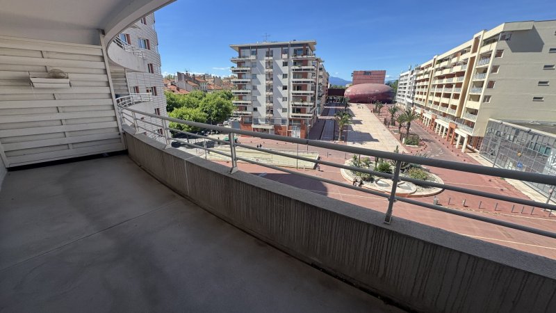 PERPIGNAN CENTRE-VILLE, dans un quartier moderne (ESPACE MEDITERRANEE) à proximité de tous les commerces, confortable F2 à la vue panoramique de 40 m² H avec terrasse de 10 m² et cave situé en 4 EME étage d'un immeuble résidentiel de construction récente. Séjour / SAM / cuisine aménagée, chambre avec placard, SDB, vestiaire. Vue superbe sur la ville. Parking en sous-sol. Vue sur le théatre de l'archipel et sur les montagnes. Expo S/O. Nouveau.