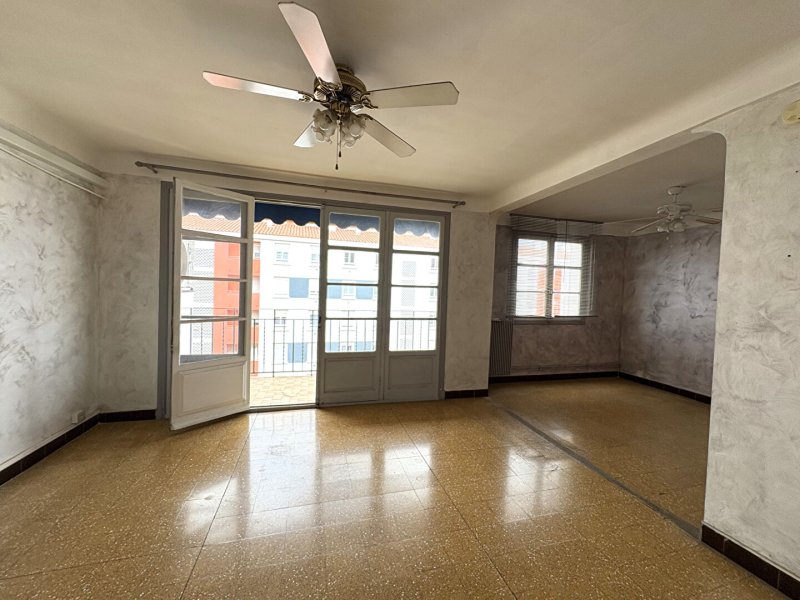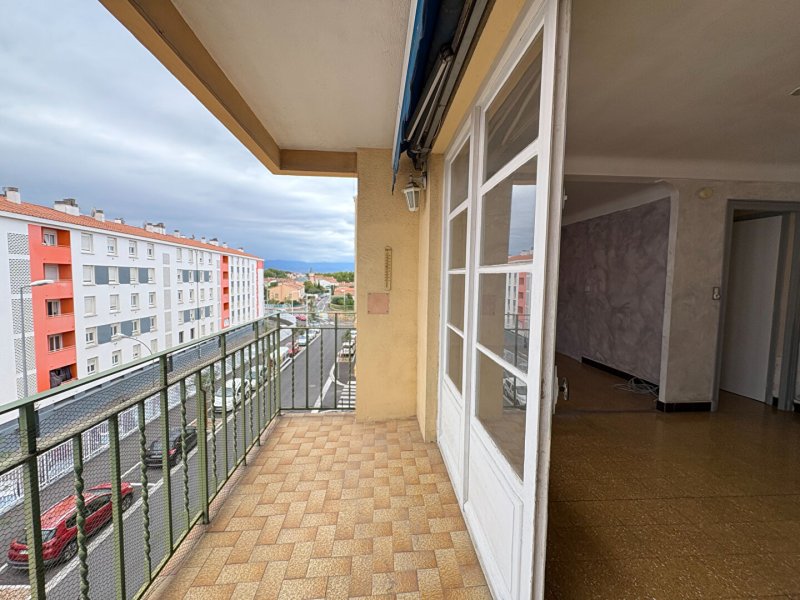 L'appartement dispose d'un grand balcon offrant une vue sur le Canigou.