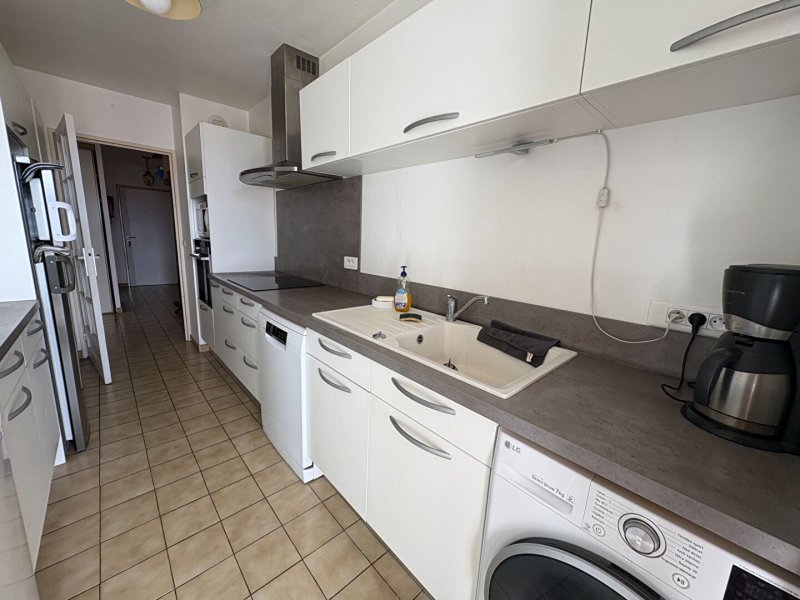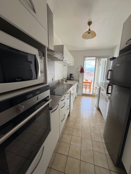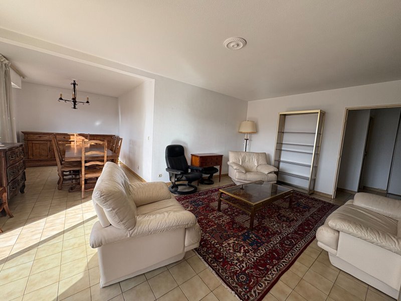 Cet appartement dispose d'une entrée donnant sur la pièce à vivre de 33 m² avec grand salon et espace salle à manger donnant sur un balcon avec superbe vue CANIGOU et sur la loggia permettant l'accès à la cuisine séparée, aménagée et équipée.