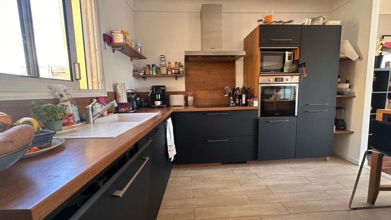 Ce bien de caractère offre de belles hauteurs sous plafond, de généreux volumes et une luminosité traversante qui renforce le confort de vie au quotidien. L'espace de vie principal se compose d'un séjour/salon spacieux de 50 m², prolongé par une cuisine ouverte, aménagée et équipée, formant un ensemble fluide et convivial.