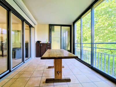 Résidence le Château - à 10min à pied du centre-ville de Prades, un appartement agréable au 1er étage avec ascenseur de type T3 (2 chambres) d'une surface loi carrez de 80m² + sa véranda de 11.55m² avec un emplacement extérieur privatif le tout dans une copropriété avec jardin entretenu, piscine et club house.