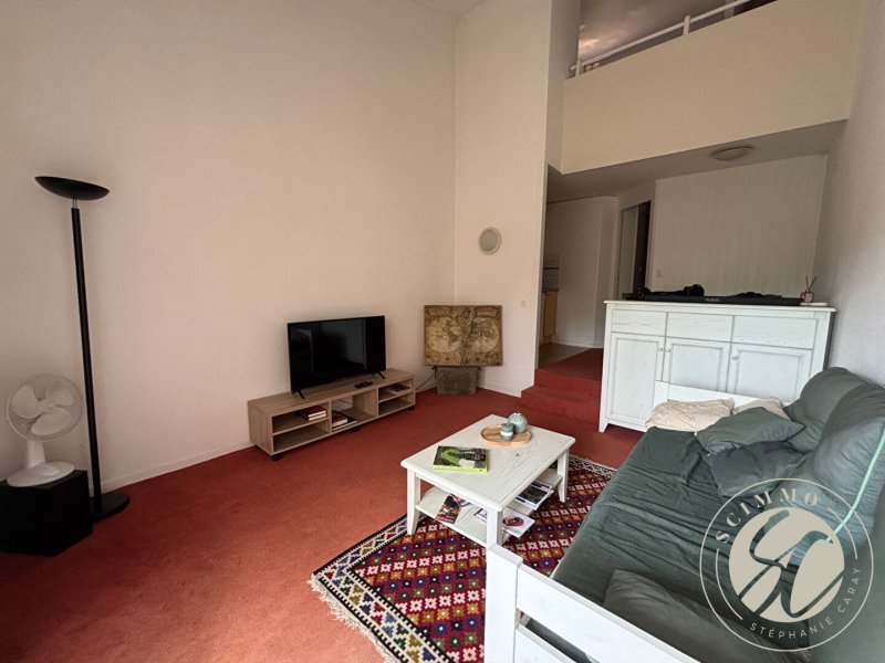 Le logement comprend un salon donnant une terrasse avec une vue panoramique sur la nature et le Golf, un coin repas et une cuisine équipée, une salle de bain, un toilette séparé, et la chambre en duplex. La résidence est sécurisée et calme, elle possède un ascenseur et une piscine. Un bail meublé est en cours.