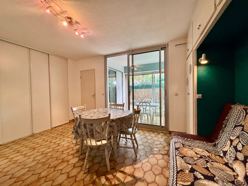 EXCUSIVITE:Idéalement situé entre le Quartier Maillol et Le Port, cet appartement en rez-de-chaussée offre un cadre de vie pratique et recherché. Il se compose d'un coin nuit cabine avec fenêtre, d'une salle d'eau, ainsi que d'un séjour lumineux ouvrant sur une loggia et une agréable terrasse, parfaites pour profiter de l'extérieur en toute saison. Vendu avec parking privé et totalement meublé et équipé. « Les informations sur les risques auxquels ce bien est exposé sont disponibles sur le site Géorisques : www.georisques.gouv.fr »