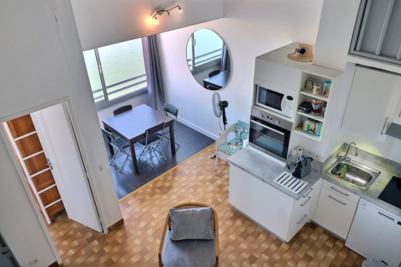 A Vendre Bel appartement T2 Mezzanine Cabine. Situé dans une résidence avec piscine et avec accès direct à la marina. En parfait état, cet appartement se compose d'un séjour lumineux avec cuisine ouverte, d'une chambre, d'une salle d'eau, WC. Une Cabine avec fenetre et une Mezzanine complète ce bien. Vous serez immédiatement séduit par sa vue imprenable sur la marina jusqu'a la Mer que vous pourrez admirer depuis l'intérieur. Vendu meublé, ce bien ne nécessite aucun travaux. Prêt à vivre ou à louer. Parking Privé. « Les informations sur les risques auxquels ce bien est exposé sont disponibles sur le site Géorisques : www.georisques.gouv.fr »