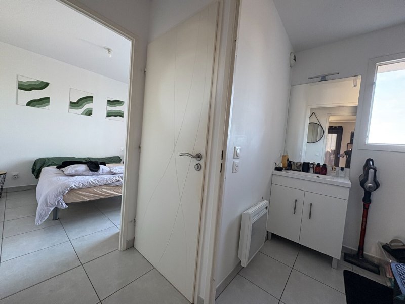 Un dégagement permet l'accès à la chambre avec placard, à la salle d'eau et au WC séparé.