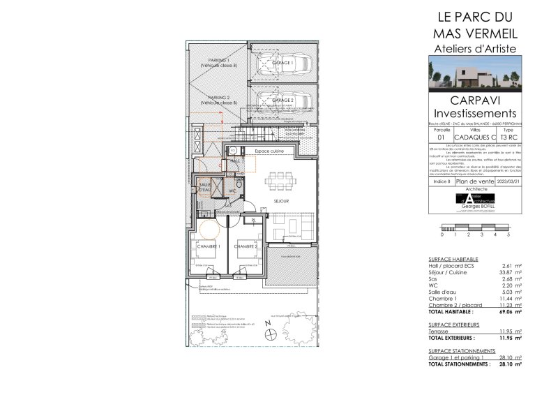 Perpignan Sud - Est / Mas Vermeil : Dans quartier résidentiel et recherché, l' Agence LAVILLE IMMO vous propose à la vente cet appartement neuf de type 3 pièces de 65.81m2 Loi Carrez situé en 1er étage d'une petite copropriété de deux appartements. Cet appartement avec entrée indépendante comprend une belle pièce de vie de + 34m2 plein sud avec cuisine américaine, deux chambres , salle d'eau et WC individuel. Climatisation réversible, assurance Dommage Ouvrages. Terrasse plein sud, sans vis-à-vis. Parking + possibilité garage en option. Livraison 4ème trimestre 2024. Frais de notaires réduits. Prix direct promoteur. Bien soumis au statut de la copropriété. Nombre de lots :2. Charges courantes annuelles : 360 EUR. Les informations sur les risques auxquels ce bien est exposé sont disponibles sur le site Géorisques : https://www.georisques.gouv.fr. Nous consulter pour visite sur site.