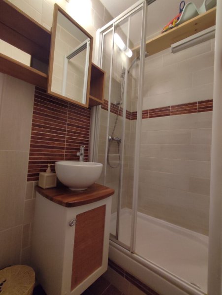 PIEDS DE PISTES pour cet appartement rénové dont la superficie est de 17,35m² carrez, auxquels se rajoutent 10,75m² de mansardes. Il est doté d'une entrée, une salle d'eau avec WC, une pièce de vie avec cuisine équipée bien pensée, et une chambrette séparée.